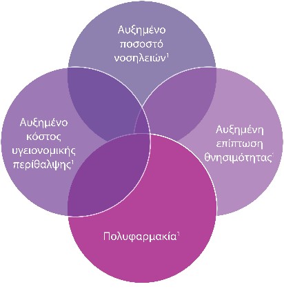 Η πολυφαρμακία είναι αρκετά συχνή στους γηριατρικούς πληθυσμούς. Η πολυφαρμακία ορίζεται κυρίως ως η χρήση ≥5 συνταγογραφούμενων φαρμάκων. Η πολυφαρμακία σε ενήλικες με χρόνια συνοδά νοσήματα σχετίζεται συχνά με μη συμμόρφωση, ανεπιθύμητες ενέργειες φαρμάκων, μεγαλύτερη τάση σε πτώσεις, γνωστικό έλλειμμα και τοξικότητα και μπορεί να οδηγήσει ακόμη και σε θάνατο.1